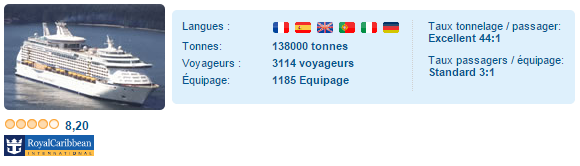 Que vous choisissiez le charme de l’ Extrême Orient , la chaleur des Caraïbes ou la magie des rivages Egéens, cenavire de Royal Carribean vous offrira une croisière à couper le souffle.